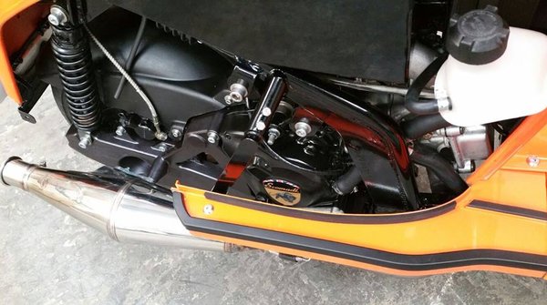 A Scomadi lényegében két híres robogó-tuningmágus közös munkája, a Scooter Innovation Ltd. mögött álló Frank Sanderson összeállt a PM Tuninggal befutott Paul Melicivel. Eddig kínai gyártású, 50-es, 125-ös és 200-as gépekben utaztak, a 400-as változat még nincs kész, a forgalmazás csak 2018-ban indul.