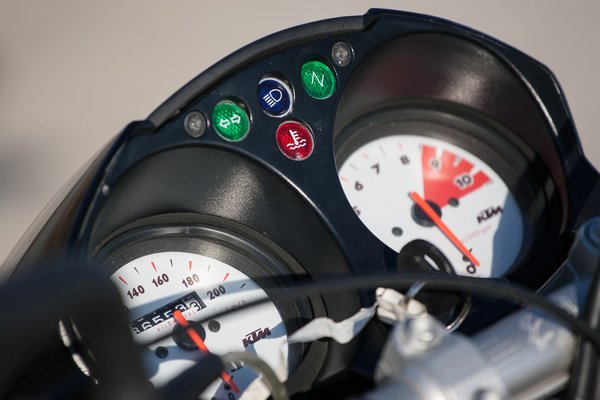 A csőd széléről visszabillegő KTM-nél a Duke II-vel igazán nagyot akartak gurítani, nem volt opció egy gagyi motor. Bátran nyúltak profi alkatrészekhez, a Magura kormány például komoly eséseket is kibír, a kompressziós öntéssel készült Brembo alufelnik könnyűek és erősek, a futómű teljesen szétszerelhető és felújítható. A rozsdamentes kipufogó részei saját cikkszámot kaptak az utolsó rezgéscsillapító rugóig. A műanyag idomok drágák, mint a veszedelem, de a fényezésük szép és minőségi, a matricákat is mélyen belelakkozták, ezek tükrében érthetetlen, hogy a felniken miért hólyagosodik fel a festék. És nem tizenkét év után, már a garancia lejárta előtt érkeztek a panaszok.