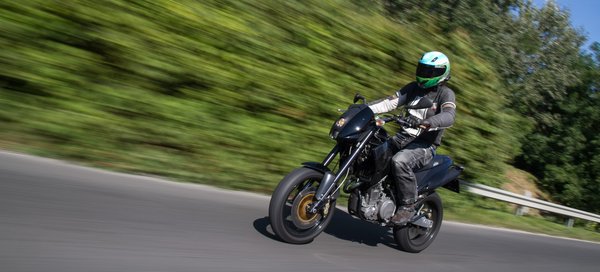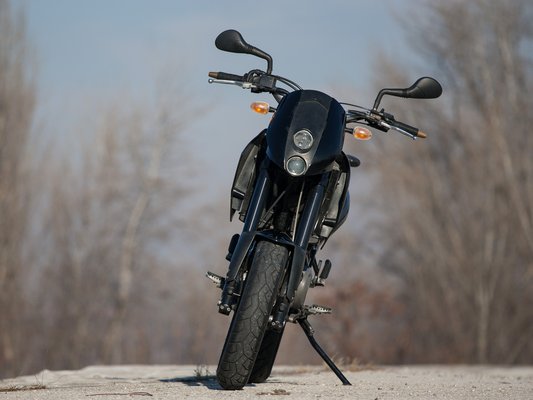 A fékek álomszerűek, sok zsír új motornál tapsvihar törne ki a nemzetközi bemutatón, ha ilyenek lennének. A futómű még elhanyagolt állapotában bámulatos. A rugóutak rövidebbek, mint a közeli rokon 640 Supermotoé, a hangolása is feszesebb – valahol fél úton van a sportmotorok és a naked bike-ok között.