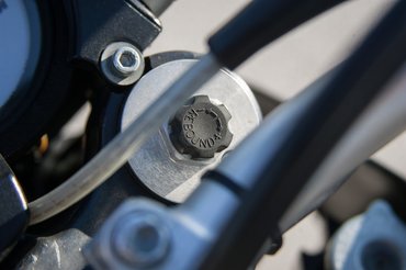 Ez az megoldás egyébként be is tud tenni, ha fogalom nélkül lát neki valaki az olajcseréhez. A vázból külön kell leengedni az olajat (a csavar elrejtve a szűrő alatt), és a feltöltés is két lépcsőben történik. És vannak a kisszériás gyártásból ismerős, istenverte hülye megoldások, például ahova a japán vág egy menetet, oda a KTM felkért egy nőgyógyászt, hogy a csavar túloldalára varázsoljon egy önzáró anyát.