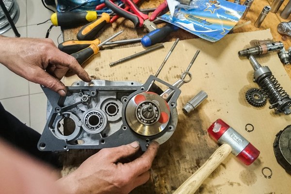 A blokk összerakásánál a teljes felújítás volt a szempont, a többi elemnél viszont igyekeztek menteni a menthetőt. A szivató és a fékkar egy festés után újszerűnek tűnt, és sikerült megmenteni a fékpedált, a villaszárat és a sztendert is. Az összerakás izgalmas legó, még a Simson faék stílusa mellett is hosszú órák szaladnak el néha egészen egyszerű lépésekkel is - a teljes újravezetékelés például ilyen, érdemes egy teljes napot rászánni, ahogyan a szétszerelésre, a csiszolásra a festésre és a blokkösszerakásra is. És ekkor még minden flottul ment, nem zuhantak ki gányolt csontvázak a szekrényből.
