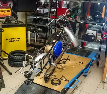 Az összerakás a váz lefestésével kezdődött, ekkor javították az ocsmány, házilagos hegesztést, amivel egy történelmi esés nyomait próbálta valaki orvosolni. Az alapozás után mehetett volna profi fényezőműhelybe, de az előre bejelentett háromhetes határidő elrettentő volt - nagyjából ennél a pontnál találták ki, hogy szép dolog a felújítás és a korhű tuning, de úgy az igazi, ha kicsit próbára is teszik a motort.