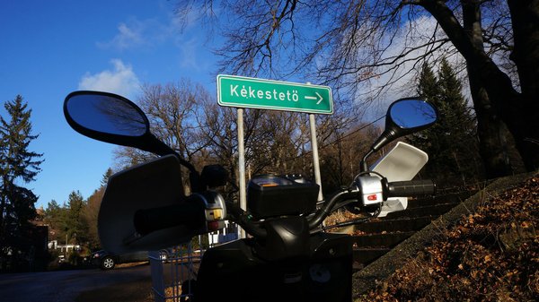 A 24-es főúton a 3 lóerő ellenére végig megvolt a 35-45 km/h, de a Kékesre vezető meredekebb szakaszokon is legkevesebb 24 km/h volt a sebesség, vagyis a budapesti emelkedők jóval nagyobb igénybevételt okoztak. Ezt követően átruccantam Galyatetőre, majd a naplementében gyönyörűen ragyogó hegyekről visszamerültem az eddigi legsűrűbb ködök egyikébe, amit valaha láttam.