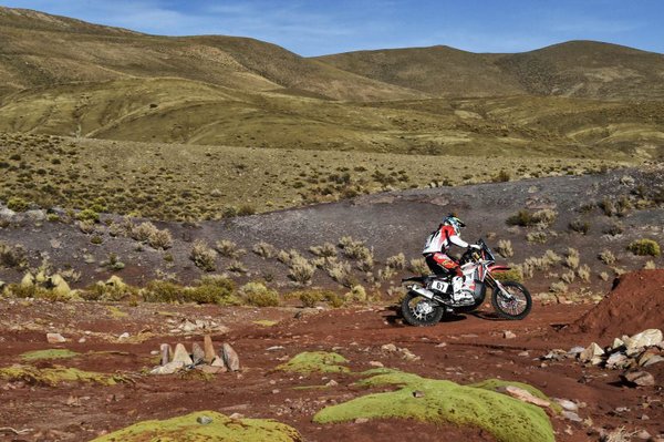 A mezőny 521 kilométeres utat járt be, amire döbbenetesen hosszú, 416 kilométeres speciál jutott. A nyomvonal 3500 méter körüli magasságban haladt, a köves-sziklás terepet pedig dűnék váltották. A nap végén megérkeztek a Bolíviába.