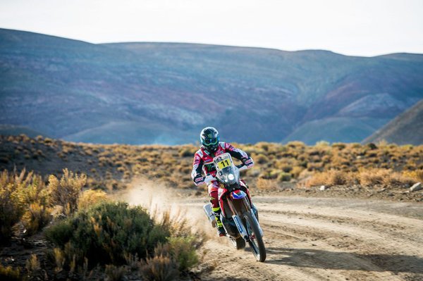 A Husqvarna két pilótája, a chilei Pablo Quintanilla és a krossz és enduró világbajnoki címet egyaránt birtokló Pierre-Alexandre Renet együtt motoroztak - a francia bátran támaszkodhatott társa navigációs tapasztalatára. Az első waypointnál Barredáé volt a legjobb idő, egy percet adott a KTM-es Sunderlandnek és Price-nak - ők hárman szinte végig együtt mentek, és folyamatosan nyomás alatt tartották egymást.