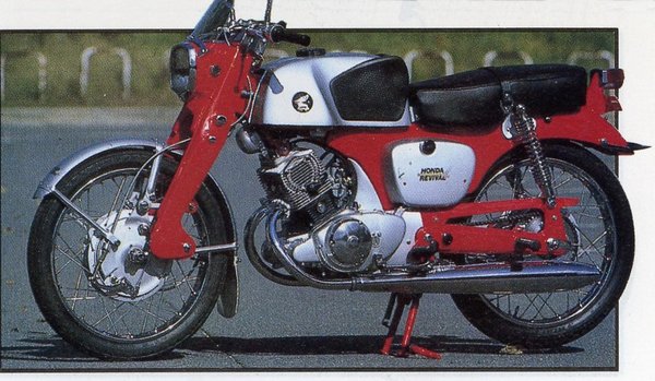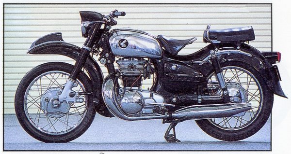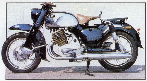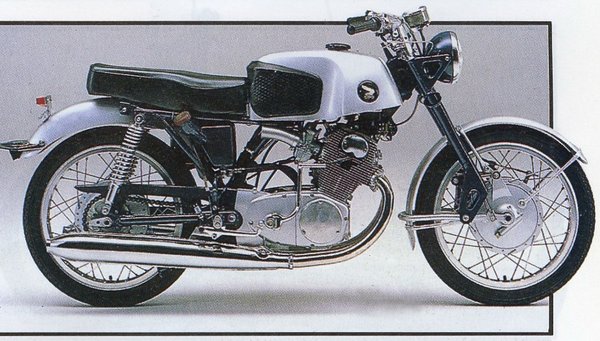Talán az első világszerte is legendásnak tartott Honda, amúgy meg az akkoriban Japánban zajló Clubman-versenyekre fejlesztett homologizációs modell. A váza a Benly C90-esé, versenykivitele 124 köbcentis és 15 lóerős volt 10 000-es fordulaton – s így nyolcadliteres négyüteműként is megfutotta a 130-as sebességet. Ez a modell ezzel nemcsak az első CB (mint ClubMan), hanem az első 10 ezret kipörgető és az első 100 LE/l literteljesítményt meghaladó Honda is lett egyben. Az utcai változatnak nem kellett alkalmazkodnia a versenyszabályokhoz, ezért abba 154 köbcentis, 16,5 lóerős motort tette – ami szintén 10 000-et pörgött. Szívfájdító vagányság közel hatvan évvel ezelőttről.