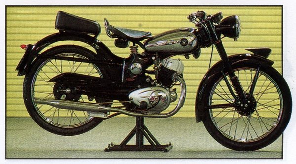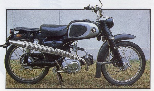 Hondáék itt kezdték kibővíteni a fekvő, 50 köbcentis egyhengereseken alapuló modellpalettát. Egy új, magas, teljes egészében préselt lemezváz, a még mindig nyomórudas, de már 9,5-ös kompresszióviszonyú Super Cub motorblokk, itt alu hengerfejjel, nagyobb szelepekkel s 5 lóerővel 9500-as fordulaton, háromgangos körváltó és felhúzott kipufogó – drága és izgalmas kismotornak számított ez akkor. Ha valaki belelátja a későbbi Daxot és az SS50-et, nem téved nagyot – itt indult az a szál.