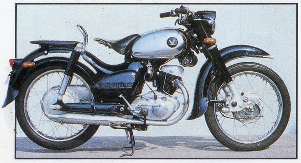 Ez volt Honda első tömegtermelésre készült, már kezdetleges gyártósoron előállított motorja. A vázhoz bevallottan európai mintákat vett alapul, méghozzá a könnyű gyárthatóságot, kevés anyagot és nagy masszivitást adó préselt lemezvázat. Itt már lánc hajt szíj helyett, a váltó egy nedves, kúpkuplungos kétfokozatú szerkezet. Megint csak kétütemű 98 köbcentiről, de már 3,5 lóerőről beszélünk a 67 kilós motornál.