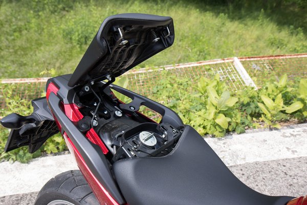 Az F 700 GS minden részletében motorkerékpár, a Honda NC750X-et elnézegetve viszont az az ember érzése, ez egy két keréken guruló autó. Nem azért, mert nagy és nehézkes, hanem mert igyekszik mindent eltakarni, de nem sportmotorosan, épp ellenkezőleg: az összkép nekem valahogy nem motorszerű. És aztán ott az inkább autókból ismert duplakuplungos váltó, meg a gigantikus csomagtartó a tank helyén, az ülés alá rejtett tanksapka, a jelentős szélvédelem.