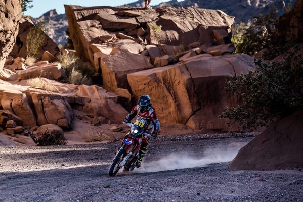 Az argentin Franco Caimi az idei év egyik legnagyobb meglepetése, ez az első Dakarja, tegnap harmadik lett, összesítettben pedig a kilencedik helyen áll. Kicsit hasonló a helyzet vele, mint Svitkóval, sok gyári versenyzőt állva hagyott.
