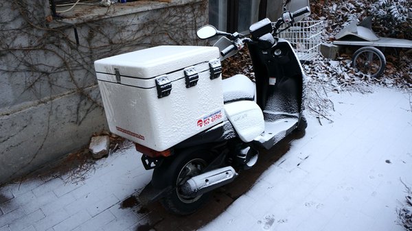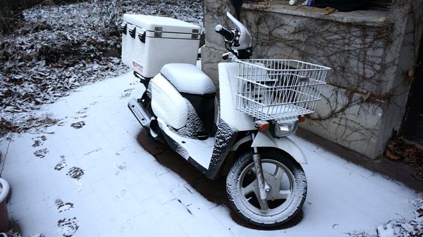 A legizgalmasabbak a reggelek. A reggeli forró zuhanyzás végén 25 éve jéghideg csapvizet engedek magamra lentről felfelé, végül a fejem búbjára is, jó 10-20 másodpercig összeránja a testet, de jobban tűröm a hideget utána. Öltözés, alsó trikó, majd 4 (!) réteg póló, vastag poláring, pulóver, bélelt motoros termodzseki és a futármellény, összesen vagy 10 réteg cucc – a téli mellény ezért 2 számmal nagyobb a nyárinál –, alul meg 2 vastag katonai jéger és farmer, termo gumicsizmával, két zoknival, ennyi azért a robogóhoz aránylag elég. A lábam sokat dolgozik napközben – ha persze kapsz egy Sóskutat, lefagy mindened mire odaérsz. De ezért van még plusz másfél esőruha a Gear dobozában, végszükség esetére. És tél van, lehet estig akármi, havazás, eső, ónos rettenet... nem jöhetsz haza egy cím közepén ilyen apróságok miatt.