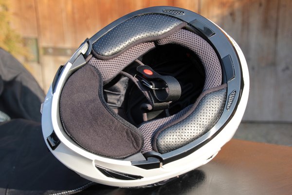 Egyébként tisztességes sisak, egész évben hordtam, mert tudni akartam, hogy a komoly bélés mennyire teszi használhatatlanná jó időben. Kánikulában, esőben, alapvetően minden körülmények közt jól viselkedett. Egyetlen felróható nyűgje az állrész forgáspontjánál lelazuló csavarok voltak, amitől a felső akadási pont nem volt elég erős. Két mozdulattal meghúztam a csavarokat, és megint úgy reteszelt nyitott állapotban, mint az új.