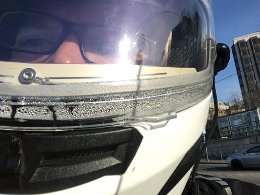 Még tavaly, nem sokkal azután, hogy kézbe vettem a sisakot, kiépítettem az elektromos csatlakozási pontot a robogón, már tényleg csak arra vártam, hogy a spirálkábelt rádughassam valamikor. Aztán végre jött egy olyan nap, amikor nem kellett kartonokat cipelnem, hideg is volt (valami mínusz 8 fok), ugyanakkor napsütéses, szép idő, habozás nélkül onlájn raktam a sisakot. A robogón nagy plexi mögött ücsörgök, alig van mögötte szél, a szellőzőnyílásokba nem sok friss levegő jut be még tempónál sem, szóval minden adott volt a páramentesség tesztelésére.