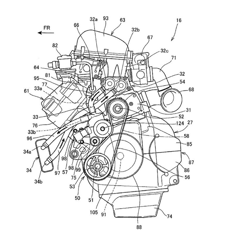 Egy kiszivárgott szabadalmi rajz bizonyítja, hogy a Honda a Kawasakit követve szintén egy kompresszoros blokkot tervez. A kikerült rajzok nem sok minden tárulnak el - annyit látni, hogy a feltöltő a bal oldalon csatlakozna a blokkhoz.