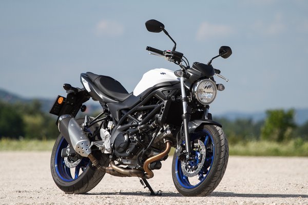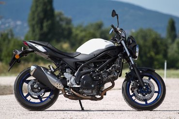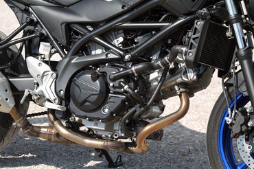 Műgyanta bevonatú, csökkentett súrlódású új dugattyúk, L alakú dugattyúgyűrűk, hengerenkénti dupla pillangószelep – sok-sok apró okosság, aminek a végén van egy robbanékony, jó vibrációjú, élénk, nyomatékos, széles fordulatszám-tartományban megvaduló V2-esünk. A teljesítményleadásnak íve van, a fordulatszámokhoz más-más élmény tartozik, és ez az, amit igazán nagyra értékelek egy közepes naked bike-ban. És takarékos a végtelenségig, öt liter alatt simán eljárni vele. Váltóban a Suzuki minimálisan jobb, könnyebben jár, de nincs akkora különbség a két szerkezet között, hogy az pontot érjen.