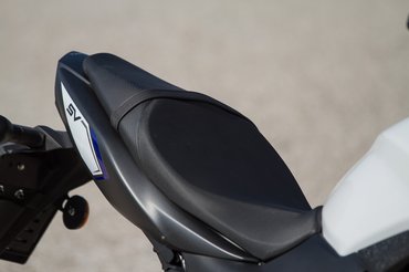 Megállni a Yamahával jobban lehet, a hullámos szélű tárcsákra az FZ8-ról és a 2004-ig gyártott R6-ról ismerős nyergek fognak rá, ezekhez képest elég szerénynek tűnnek az SV történelmi úszónyergei, amik kicsit puhák és nyúlósak.