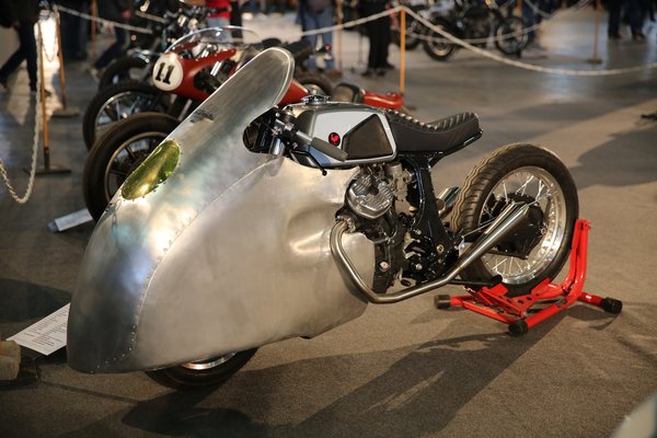 El kell ismerni, a Mokkáék által épített bálnaidomos CX500 az egyik legszebb trágyapumpa, mert elég sokat takar az idom a szerintem rút blokkból, meg az eredeti arányokat is jótékonyan palástolja az alumínium lemezekből formált burkolat. Csak engem mérhetetlenül zavart, hogy ezt a poént már többen is elsütötték az utóbbi években, számos márkából csináltak már ilyen ötvenes évekbeli versenymotorokat idéző építést. Az a baj, ha valami ennyire markáns alapötletet dolgoz fel valaki, akkor sokan fogják majd kiabálni: na, ez is csak másolni képes.