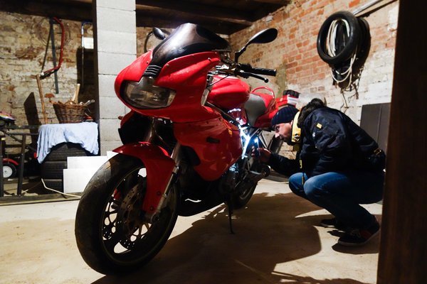 Tulajom nem sokat tud, mint ezen a ponton kiderül, ő talán kétszer elment a mocival Balatonra, no meg párszor tekergett a környező dombokon, nem nyúlt hát semmihez. Hogy képbe kerüljünk, felhívjuk az előző gazdát, akit emberem jó ducatisnak mond, mellesleg az hozta be a motort két évvel korábban. A túloldal azonnal a Ducati dicséretével kezdi, de leállítom, mert azt, hogy milyen jó, majd inkább eldöntöm magam, csak azt szeretném megtudni róla – legalább bemondásra -, amit nem látok.