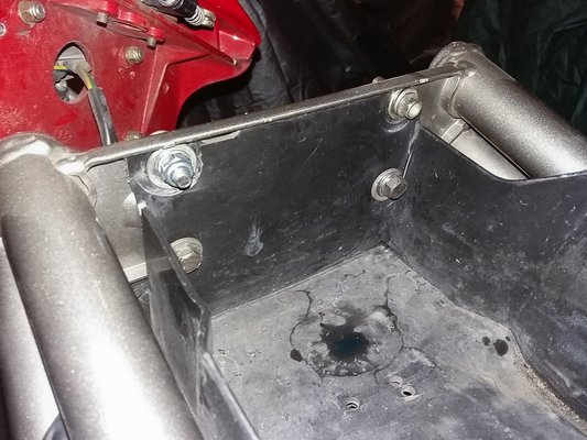 Leszedtem hát a hátsó lámpát (ott csak az izzó égett ki), a hátsó kapaszkodót (ez egy óriási, masszív öntvény, gyönyörű tárgy), megfúrtam a dobozt, majd menettömítővel és önzáró anyákkal, négy hátsó rögzítéssel összeraktam az egészet. Tessék, most essél szét, ha tudsz.