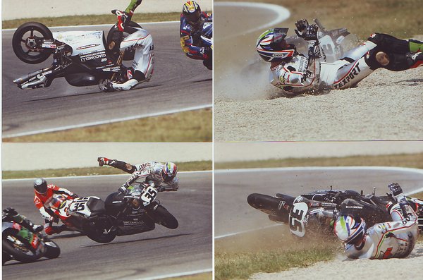„Aprócska hiba volt, nem estem nagyot, de amikor reccsent, már tudtam, ismét kitörtem a nyakam. A kórházban az orvos megkérdezte: tényleg akarok még motorozni valaha? Persze igennel válaszoltam, ő meg erre azt felelte, hogy tizenkét-tizennégy hónapig nyugodtan felejtsem el. Egy hétig voltam kórházban, és a legnagyobb távolság a vécé volt, amit megtehettem.”