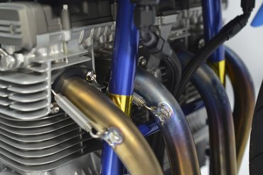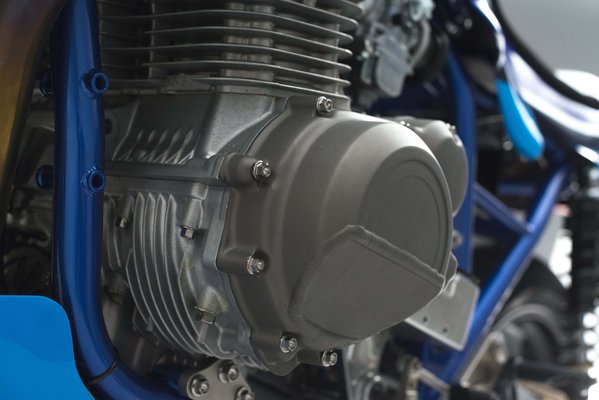 És még mielőtt valaki azt gondolná, hogy az ilyen veterán versenyeken nem mennek igazán tempót, érdemes vetni egy pillantást motor baloldali deknijére, amiből kivágtak egy darabot a forgattyúsháznál, hogy nyerjenek még egy kis dőlésszöget.