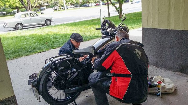 Ezért lett, hogy a Parkoló Parádé helyett egy 66 éves Nusi feldarabolásával töltöttem a szombat délutánt. Fontos volt az ügy, ugyanis a tervezett weissenkircheni lassútúra másik résztvevője épp Endre és az ő motorja lenne. Egyedül nem annyira vicces egy ekkora túra, pláne egy először hosszú menetre fogott, 61 éves kismotorral, tehát meg kell oldanunk a problémát, meg aztán - legalább látunk egy kis NSU-gyújtást közelről, jól jöhet a túrán, nem ott kell majd mindent kitalálni. Addigra Gyuri – egy olvasónk, aki szintén elvétette a PP időpontját és szintén délre ment ki, majd várakozás helyett inkább hazament, s véletlenül épp abban a házban lakott, amelynek a tövében Endre lerobbant - tehát Endre és Gyuri már nekilátott a gépnek és betájolták a hibát a gyújtás környékén.