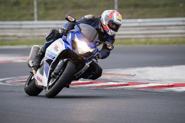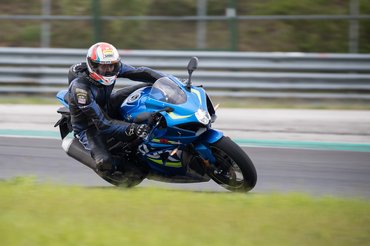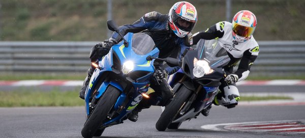 A felszáradó pályán két menet után elégedetten szálltam le a motorról. A nehéz vasváz elég visszajelzést szolgáltat, a fék nem túl érzékeny, de nem fárad, a motor nem valami erős, de nagyon jól szól, a futómű pedig alkalmi térdelésre is megfelel. Így már meg tudom érteni, aki a nagyon erős mezőnyben GSX-S750-re szavaz, és lemond némi teljesítményről és műszaki tartalomról, a 2,7 milliós ára ugyanis a konkurensénél jóval kedvezőbb. A Z900, az MT-09 és a Triumph Street Triple S egyaránt három millióba kerül, háromszázezer forintból pedig elég sokat lehet motorozni. Főleg természetes közegében, utcán. Na de az új GSX-R1000!