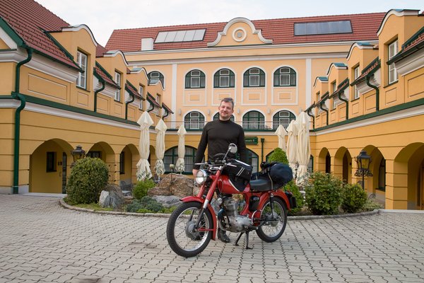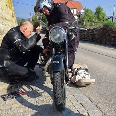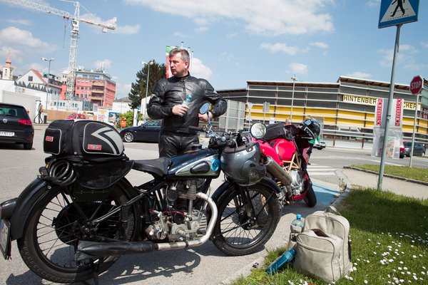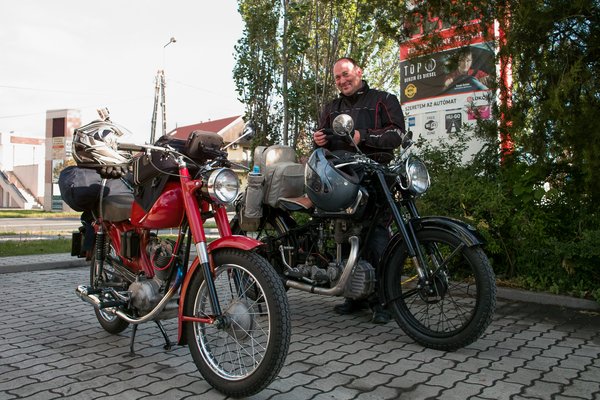 Úgy gondolom, bárkinek ez lenne a leglogikusabb megoldás: ha Ausztriába kell menni egy programra, majd másnap hazatérni onnan, a 61 éves, 98 köbcentis motorját tolja ki a feladathoz a garázsból. Esetleg a 66 éves 250 köbcentiset, de az már szinte mindegy.