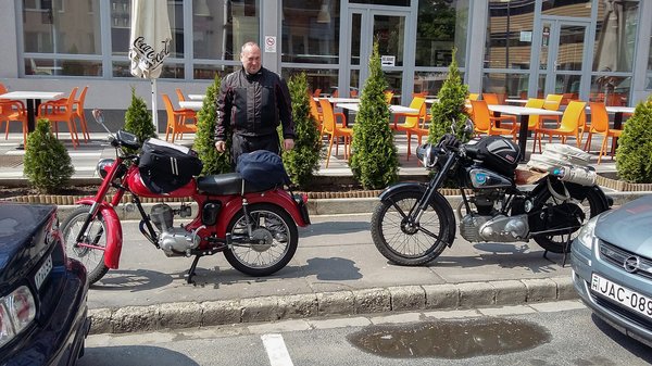 Ez nagyjából a túra végét is jelentette. Elbúcsúztunk, bár a búcsú nem ment könnyen, ez sejthető volt az előzményekből. Rúgás, indul, sisak lehajt, leáll. Rúg, pöff itt, rúg, pöff ott, majd semmi többet. Én kicsit úgy voltam, hogy a Top Gear (azaz most már The Grand Tour) stílusában felpattanok a Morinire és otthagyom a drága barátot, szenvedni, de persze nem tehettem, csak lassan megőrültem belül. Pillanatok alatt elillant a bent felszedett meleg, olyan párás lett a felhajtott bukóm plexije a leheletemtől, hogy csöpögni kezdett a víz, Endre meg csak rugdalt, rugdalt, rugdalt, azt hittem, ott terül el, ennek a drága embernek az általam harmincöt éve ismert, mindig szelíd tekintete valami gyilkos zöld fényben lobogott. Ettől viszont már az NSU is megijedt. Óriási füstöt köpve egyszer csak elkapta, én meg az Endrét még soha nem láttam ilyen villámgyorsan cselekedni. Épp csak regisztráltam, megy a gép, ő pedig már ott se volt, csak a füst lebegett utána.