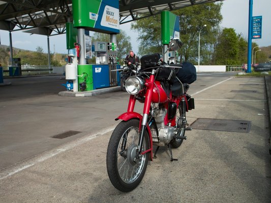 Mivel még korán volt és Lacus barátunkkal (aki egy sokkal újabb és gyorsabb motorral, egy velünk párhuzamos, de olajozottabb működésű univerzumban haladt Weissenkirchen felé) későbbre beszéltünk meg találkát egy ebéd mellett, ezért csak egy gyors levest ettünk, majd szedtük a sátorfánkat és nyeregbe pattantunk. Mindkét motor pöcc-röff, én el is hajtottam, mert fogyott az idő, el kellett érnünk még a szállást, s csak az út egyharmadán voltunk túl. Endre nem jött. Ki nem találják, megint leállt az a dög. Aztán rúgásra csak egy füstpamacs hagyta el a kipufogót, második rúgásra meg egy másik a karburátort. Aztán lehetett verejtékezni. Nem hinném, hogy Endre az NSU-val mind szorosabbra fűződő barátságának vízióját erősítette a fejében azokban a percekben...