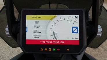 Az aktuális sportmotorokhoz hasonlóan az Adventure R-ekben is egy dőlésszög-szenzorra épül a teljes elektronikai rendszer, a kipörgésgátlótól, a motorfék-kontrollon és kanyar-ABS-en át egészen a kanyarfényszóróig minden, és éppen ennek a működéséről nem tudtam meg semmit, ugyanis offroad módban a dőlésszög-érzékelő inaktív, hiszen terepen teljesen életszerű rézsűn és árkokban mászkálni, az pedig becsapná.