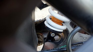 A futómű a WP csúcsmodelljei közül származik, a PDS rendszerű központi rugóstag korábban a versenyendurók és krosszmotorok sajátja volt. Ennek lényege, hogy közvetlenül a lengővillához csatlakozik, nem a himbarendszer adja a progresszivitását. Tulajdonképpen két gátló egyben, egy kisebb és egy nagyobb dugattyú dolgozik belül, amiből az egyik a finom úthibákat veszi fel, a kis mozgásokat csillapítja, míg a másik nagy terhelésnél kapcsolódik be, például egy ugratásnál. Elöl 48 milliméter átmérőjű telószárak dolgoznak a versenymotorokhoz hasonlóan különválasztott csillapítással, a kettő között pedig ott van a rendkívül merev váz. Mindebből a motorozás közben mindössze annyi csapódik le, hogy mindenen átmegy, olyan helyekről jön ki, ahová 100 kilós bokorugróval is kétszer meggondolom, hogy bemenjek-e.
