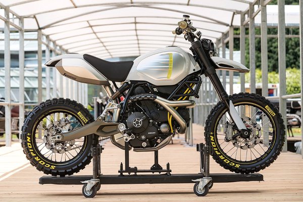 A café racerek között egy átépített Scramblerrel nyűgözték le a zsűrit - a váz, a lengővilla és a blokk maradt, viszont küllős kerekekkel, ledes lámpával, komoly futóművel, mélyre húzott kipufogóval és bámulatosan szép alumínium tankkal és ülésidommal turbózták fel. A tanulmány kategóriában a harmadik helyezés lett az övék egy Desert Sled alapú retró-futurisztikus géppel.