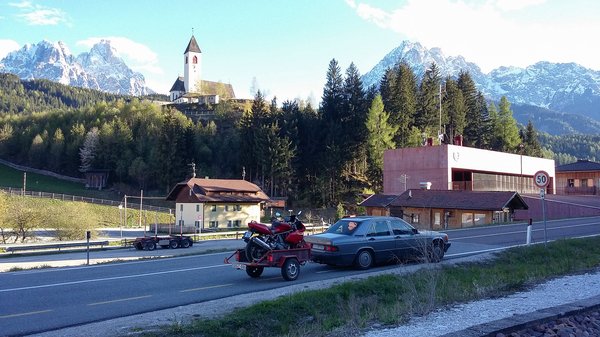 És mind a két korábbi japán motorom beleköpött a Dolomit-levesbe, az egyik egyenesen a szervizi felkészítésből indult Olaszba. A Kawasaki a láncát szedte szét odaúton, ami aztán állandóan rángatott, riogatva azzal, hogy egy óvatlan pillanatban szétdobja a váltót is. A Yamahának meg a tűszelepei kezdtek ereszteni – egyik a másik után, úgy, hogy a Tre Sassira talán kettő, esetleg csak másfél hengerem maradt a négyből. Meg alatta egy hatalmas benzintócsa.