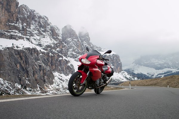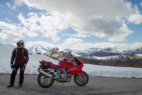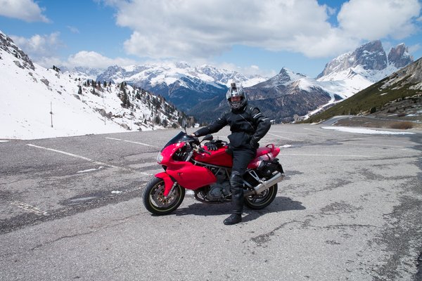 Ezzel a motorral olyan örömforrássá váltak a Dolomitok kanyarjai, amit korábban a Kawasaki Z750-esen és a Yamaha XJ900-ason csak sejteni tudtam. Mivel tényleg szezon előtt voltunk, biciklistákat egyáltalán nem láttunk, motorost tízpercenként egyet, autók se igen fordultak elő, talán holland buszból fordult elő legtöbb, jó ha kéttucatnyi. Tehát miénk volt az egész út. Ami a Dolomitokban jellemzően sima. Amelynek a kanyarjai kiszámíthatók. Ha nem kiszámíthatók, azt ordítva jelölik halszálkákkal. És bár a hágókon még negyven centis hó volt, alig-alig volt vízátfolyás az úton.