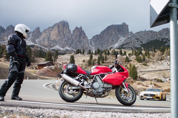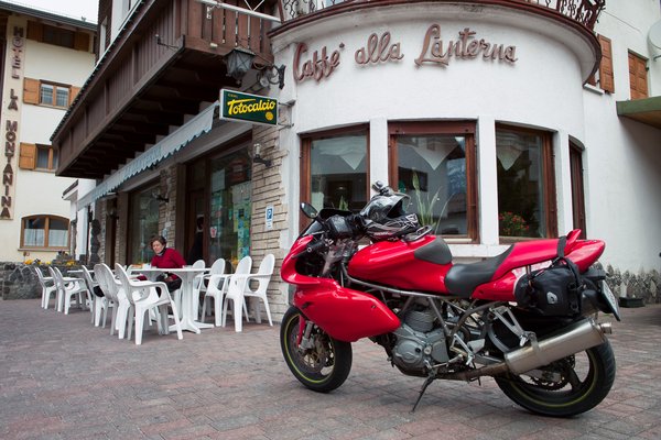 Megjártuk a Pordoit, a Tre Sassit, a Falzaregót, a Gardenát, Canazeit, Cortinát és mindent, ami arrafelé van. Mennyország. Huszon-fokunk volt, ideális motoros idő – fent a hágókon cúggal és hűvösebben, lent a völgyben már-már nyári meleggel. Soha nem esett jobban motorozás, ennél jobb dolga tényleg csak a madárnak van. A Ducati bömbölt, szuszogott, hörgött, fújtatott, morgott és dorombolt alattunk, a mai napig nem tudtam feltérképezni az összes hangot, amit kiad, pedig valamennyi földöntúli élvezet. Nem, sajnos ilyet a japán motor nem tud, olyan ez neki, mint elmagyarázni a harmadik dimenziót annak, aki csak kettőben lát.