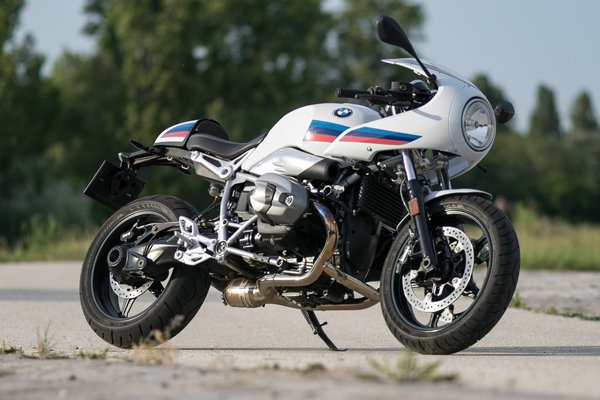 Egy töltény hegyét formázó fejidom, csutkakormány, üléspúp - rendes segédváz sincs, csak egy kis váznyúlvány tartja a nyerget, ennél egyszemélyesebb nem is lehetne. A café racerség jegyében a lábtartót is hátrébb tették egy arasszal az alap nineT-hez képest, ami bölcs húzás, ettől lett ugyanis értelmezhető a szándék, nem pedig olyan hát így adta ki hatású szerencsétlenkedés, mint a Sportster R-nél vagy Yamaha XV950 Racernél.