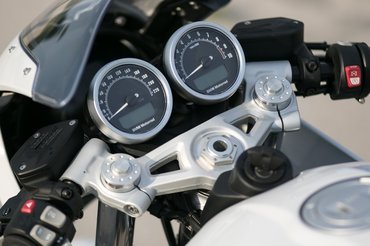A fék közel sem csúcsmodell, az olcsósított nineT-kra nem jutott radiálisan rögzített nyereg, az adagolhatósága sem egyenletes, kicsit harapósan indul meg. Ez még megszokható, az ABS-t és a kipörgésgátlót viszont egy idő után inkább kikapcsoltam. Biztosan van rá magyarázat, miért is ne lenne, az idegesítően túlgondoskodó anyák mögött is van jószándékú indíték, de attól ez még feleslegesen hamar ugat bele mindenbe, jóval a megcsúszás határa előtt. Mivel a futómű nem mindig tudja lekövetni az utat, gyorsításkor elég egy kis úthiba, és máris dadogva veszi el a gyújtást, vagy kattog az ABS. Szerencsére egyetlen gombbal kiiktatható mind a kettő, nem kell menüben kalandozni vagy biztosítékot kipiszkálni.