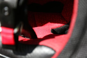 A párnázás feszes, de közel sem annyira nehéz felvenni, mint az Icon Alliance-t, annál minden egyes bebújás felér egy császármetszés nélküli születéssel, a felsírást is beleértve. A bélés gusztusos piros, elegáns, mint a Drakula köpenyének a belseje, tapintásra is jó, de ez a minimum, amit egy drága sisaktól elvárok. Érdekesség, hogy pár éve egy kereskedő rengeteg kifutó Icont hozott be, és elég olcsón kiszórta őket – több barátom is vett, nekik fél év után elszakadtak az alsó párnák, és egy év után pedig bemattult a plekó, Motorpartsshop Zsolti viszont megnyugtatott, hogy azok súlyosan túltárolt darabok voltak, hozzá még ilyen panasszal nem jött vissza senki. Ez a bélés mindenesetre jó pár beleizzadás után is szép, nincs még szaga, de mivel csak egy hónapja hordom, ez nem mérvadó. A minőségérzet megvan.