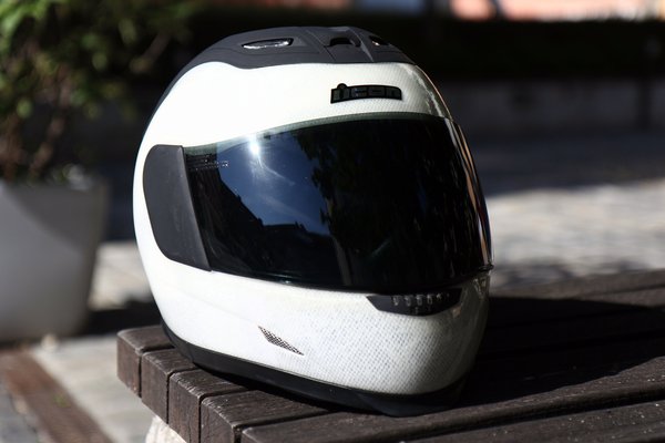 Az Icon egy bevállalós gyártó, persze, mi mással robbantson egy viszonylag friss márka (2002-ben alapították), mint a penge dizájnnal? Először azt hittem, hogy ez csak simán nyers sisak, vagyis direkt nem fejezték be. Azóta beláttam, így önmagában is megáll. Még nem vetettem el teljesen az egyedi fényezés gondolatát, de ahogyan telik az idő, egyre kevésbé érzem szükségét.