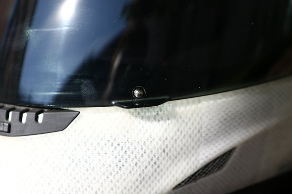 Az Airframe sisakok sajátos megoldása a plekszit legalsó állásban rögzítő fém bütyök, amely ha bepattan, garantáltan nem nyílik fel véletlenül. Emiatt a nyitás megszokást igényel, nem egyenesen felfelé, hanem kicsit kifelé tolva lehet felhajtani – Bistei kolléga az MT-10 tesztre vitte ennek a sisaknak az utódját, és nem is tudott megbarátkozni vele. Én simán együtt tudok élni az ilyesmivel, illetve a kontaktlencse miatt nálam különösen fontos, hogy jól zárjon, hamar kicsinálná a szemem a rossz helyre áramló menetszél.