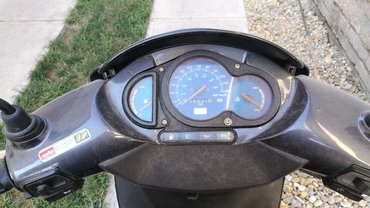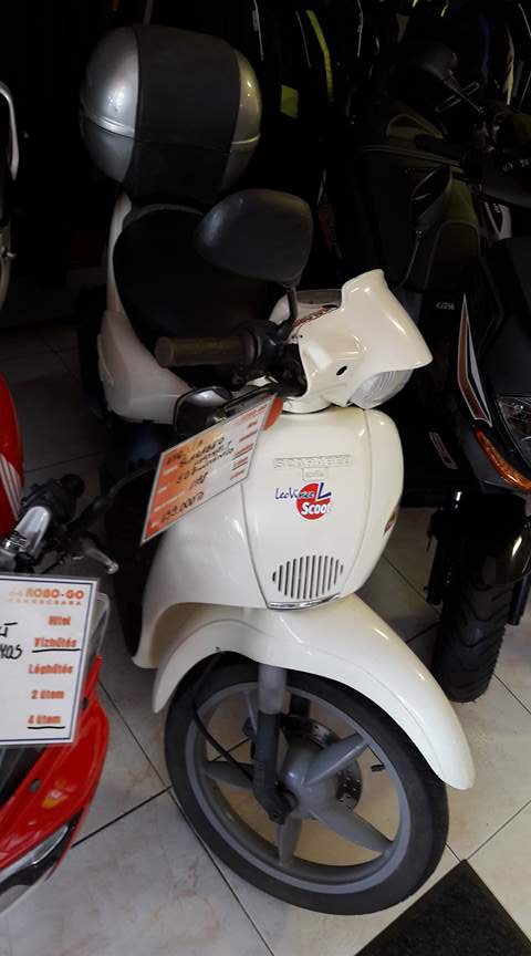 A kistarcsai sokkal szebb volt - befutónak éreztem, a hirdetésben elég sok cserélt alkatrészt sorolt fel az eladó, látszik is, hogy volt gazdája a gépnek. Polír volt a budaihoz képest, nem folyt a teló, nem mállott sehol, de az önindító szabadonfutója már kezdett kilenni (típushiba, tizenpárezer forint, nem nagy ügy), lejtőn és egyenes úton szépen ment, tudta óra szerint a nyolcvanat (valóságban majdnem hetven). Emelkedőn viszont alig ment fel, éreztem, hogy ez már kivan, pontosan úgy viselkedett, mint a Kanári-szigeteken meggyűlölt, minden porcikájában rommá használt Kymco.