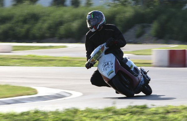 A SPD Scooter Weekend nyitónapjának a végén mindössze kétszer tudtam felmenni. Először Berzit vittem fel, azzal a nem titkolt szándékkal, hogy ha tényleg annyira béna vagyok, mint ahogyan sejtjük, akkor ne az idei, éles versenygépet hajtogassam magamra. A hiányzó tudást bátorsággal pótoltam, meg is néztem, hogy hol kezdenek súrolni a Berzerker idomai. Utólag elemezve a technikámat ( :DDDD) az látható volt, hogy hasznosabb lenne, ha testtel jobban betenném magam a kanyarokba, akkor nem kellene ennyire megdöntenem a Hondát, és jobb tempót tudnék elérni. A végére azért meglettek a jó ívek, élveztem az első etapot.