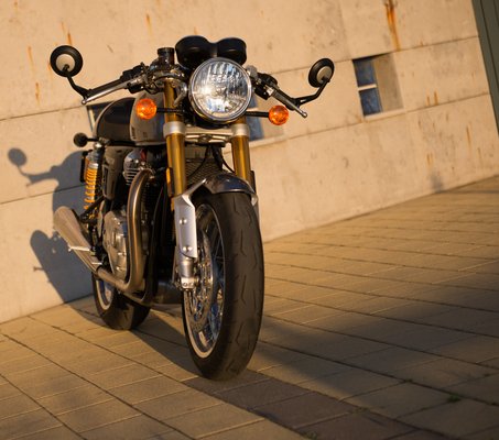 Vigyázz, erős, kiáltotta még utánam Norbi, nyilvánvalóan viccből. A Thruxton R nem gyenge, de nem is ijedek meg tőle – nagyjából pont jó. De utoljára jellemezném az erős szóval. 1200 köbcentis a teljesen új motor, ami a T120 Bonneville High Torque erősített változata nagyobb air box-szal, 500-zal magasabb tiltási fordulatszámmal. Négy évig dolgozott rajta a tervezőcsapat, ha jól értem, csak a blokkon. De muszáj feltennem a kérdést: vajon mit csináltak ezalatt odabent, a munkahelyükön?