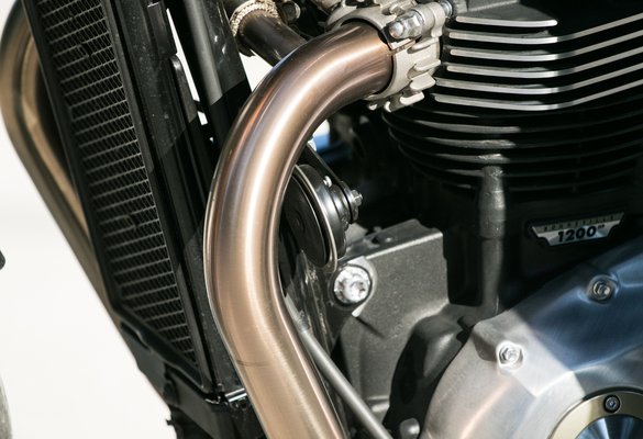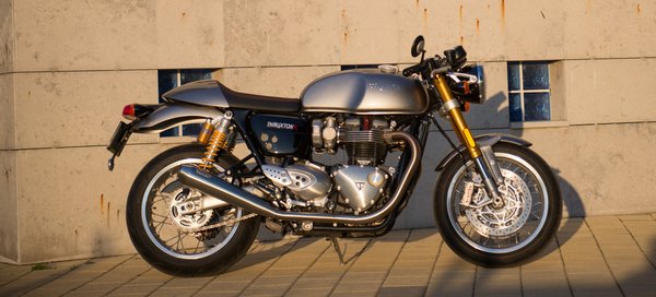 Egy sportos motorokhoz szokott felhasználónak persze inkább még kényelmes is, hogy én nem ilyen vagyok, a legkevésbé sem a Thruxton R hibája. A hangja is jól sikerült. Autókon egyre gyakrabban fülelünk gyanakodva, hogy valami elektronikus műhang-átkúrás áldozatai vagyunk-e, itt legfeljebb a típusbizonyítványt kiadó testület munkatársai konstatálták szomorúan, hogy a Triumph milyen ügyesen találta meg a kiskaput. A Thruxton alighanem hangutánzó szó. Kicsit mint egy tüsszentés az influenza záró harmadából, amikor óvatosan, hogy mások ne lássák, belenézünk a tenyerünkbe, van-e valami meglepetés.