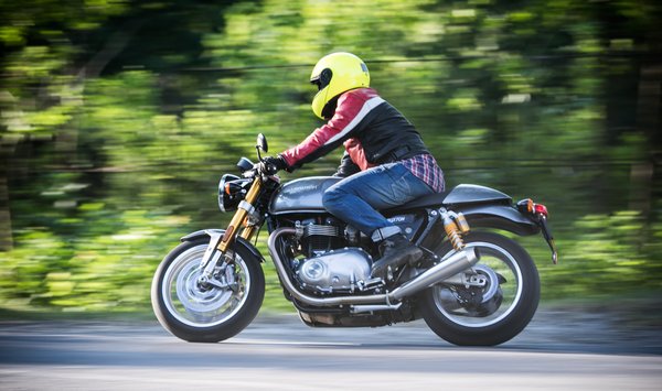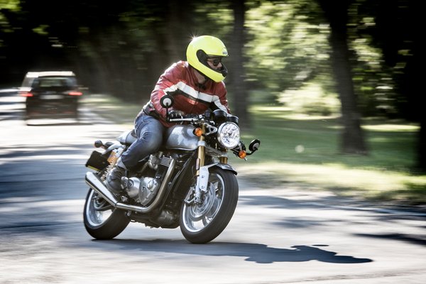 Nem rossz rajta motorozni. Könnyű, 203 kiló, és ezt érezni is rajta; a legjobb talán, hogy alumíniumból vannak a felnik, így valósággal belehelhetjük a kanyarokba. A könnyűségéhez nagyon illik a vastagsága is: ez egy vékony motor, már szinte mountain bike. Vásárlás előtt érdemes csekkolni, nem rakta-e át arról is a Norbi egy Daytonára a kormánykiemelőt, mert az a kis plusz kényelem nagyon fontos lenne. Így feleslegesen sokat terheljük a kezünket, és ha egy kis menet közbeni derékegyenesítő kézpihentetésről visszahuppanunk a kormányra, az már egész komoly becsapódás. Ilyen motoron elsődleges a jó megjelenés, az pedig nem csorbul kicsit magasabb kormánnyal. A motorerő amúgy is behatárolja a versenyzési potenciált. Mondjuk ki, nem egy Thruxtonnal fogjuk alázni a sportmotoros kiscsávókat a Mátrában.