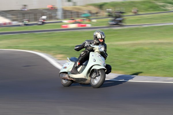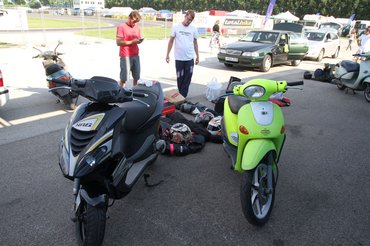 Megy az edzés, a legjobb időt a Big Hero hozta el, 1:10-et ment a leggyorsabb pilótájuk, és szerényen azt nyilatkozták, hogy így is benne hagytak két-három másodpercet a pályában (azóta 1:09). Látványosan nagyot megy a Kimle Scooter Team, a Sáling testvérek villámgyorsak a bordó Piaggio Liberty-vel, az 1:10 tetején mennek. A ProCaMoto 11-es köröket megy, ez egyébként a tavalyi dobogó, csak a sorrend nem stimmel.