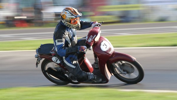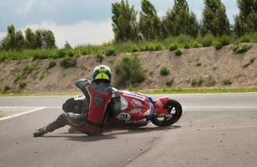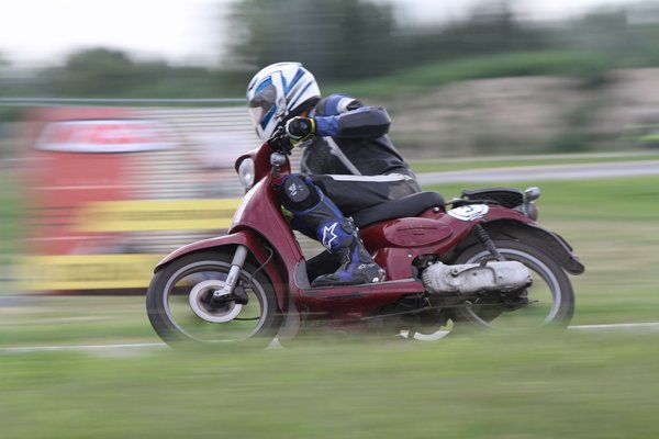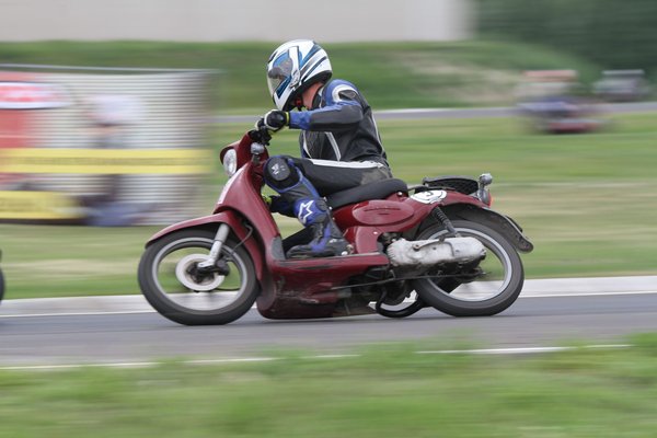 Valamivel több mint húsz perce mentem, és kicsit összejött az önbizalom. Elkezdtem érezni a gép határait, már nem álltam pánikszerűen egyenesbe, amikor leért a lemezke, Tom szerint már 1:16-os körök is összejöttek. Iszonyat éles harc megy az első helyért, és mivel nem akartam elcseszni mások játékát, alkalmanként elengedtem az élbolyt, utána tudtam faragni a saját köreimet. A box melletti sikán balos-jobbos-balos kombóját (úgynevezett mérleg kanyar) fűztem, amikor a középső terhelésváltásnál elment a hátulja. Sem a mozdulat nem volt szögletes, sem a tempó halálos, éreztem, ahogy finoman megúszik a hátulja, azt igazából nem is éreztem, amikor földre kerültem. Ellenben azt rohadtul, amikor a mögöttem jövő átment az alkaromon, aztán nekicsattant a bordáimnak. Ahogy megy ki az adrenalin, egyre jobban fáj a kezem, bízom benne, hogy idővel jobb lesz és vissza tudok menni. A harc még a lassabbak közt is kemény, sosem gondoltam volna, hogy majd 50 köbcentivel ilyen izgalmas lehet a menet.