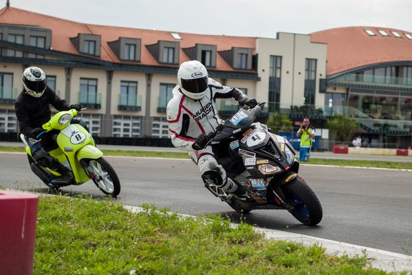 Beszélgettem a Móka és Kacagással, megtudtam, hogy az utolsó helyüket egy fékhibának köszönhetik. Valami megszorult a Dio ZX-ükön, felforrt a fékfolyadék, és ezt kellett megoldaniuk. Most valamennyire jó, de csak 1:20-as körök jönnek ki a gépükből (rekordjuk 1:14).