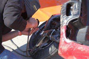 A SpeedFright Team elég szépeket takarózott a nagy menés közben, talán ezért, talán másért, de a Peugeot-juk első futóműve elengedte magát. Stump Bandi szinte repült, hogy végre hegeszthet egy kicsit! A célegyenesben bóbiskolt, amikor Sipi riasztotta, másodpercek alatt - de tényleg - felpattant a paddock-robogóként szolgáló Berzire, és zúzott a Szigetszer Szervizpontba, és hergelte is a pákát. A SpeedFright most folytatja a versenyt, a 28. helyre estek vissza.